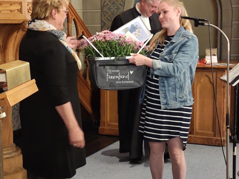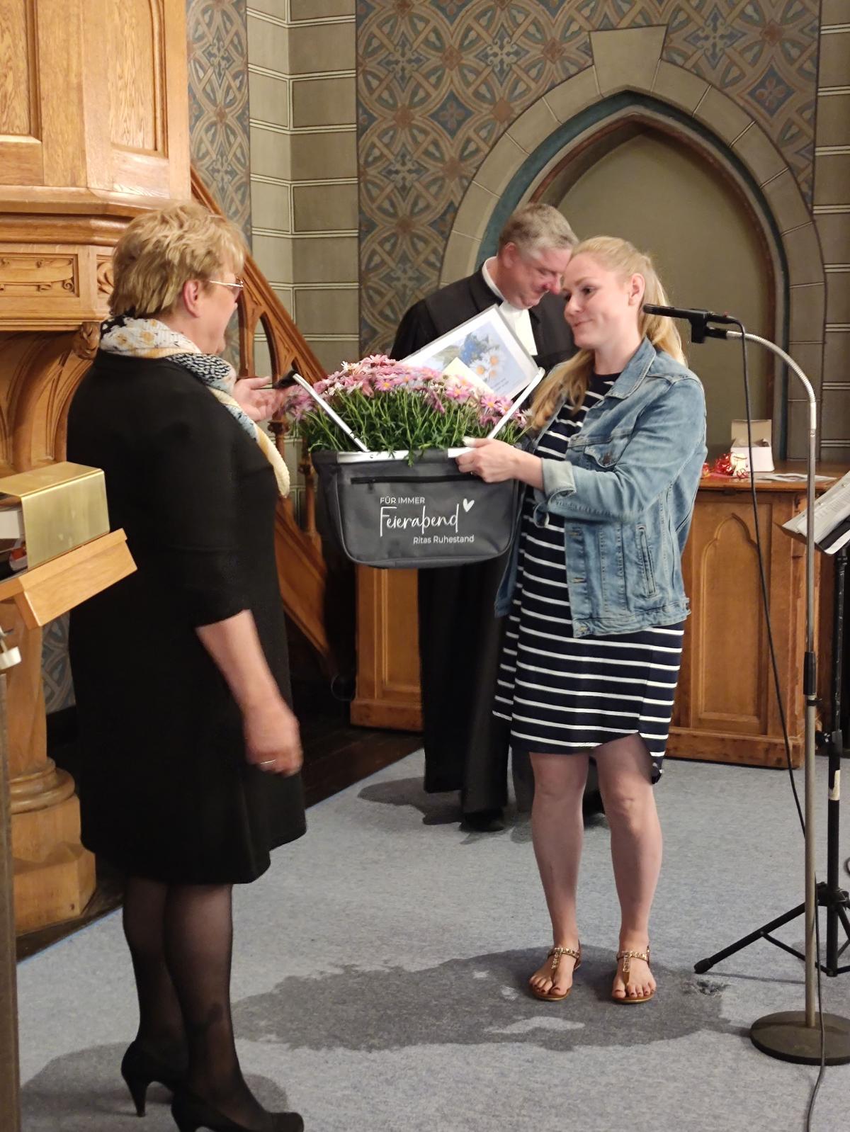 Im Gottesdienst wurde Sandra Irps vorgestellt, die ab dem 01. Juni als Juegndleiterin angestellt ist und die Gruppen von Rita weiterführen wird.