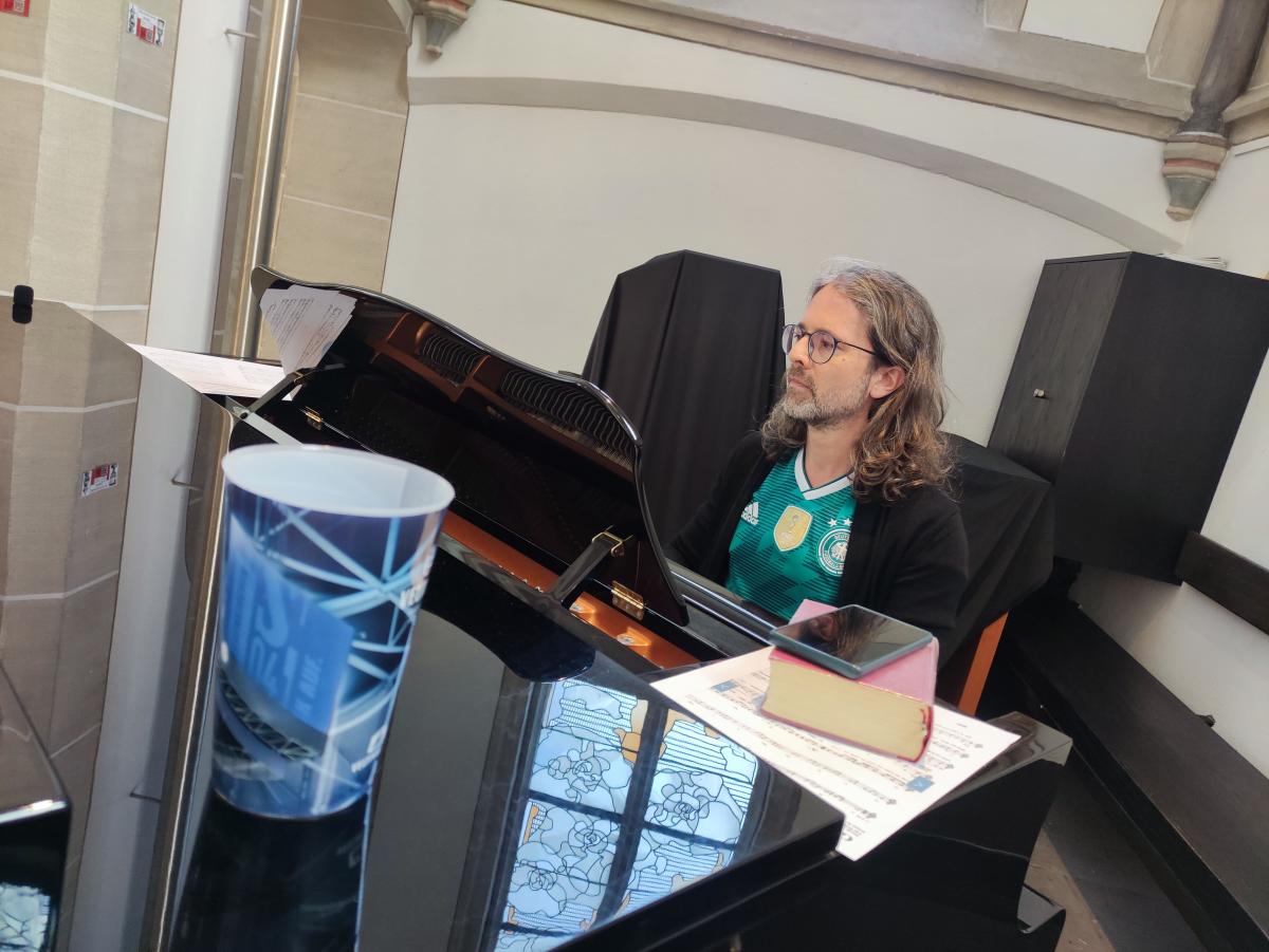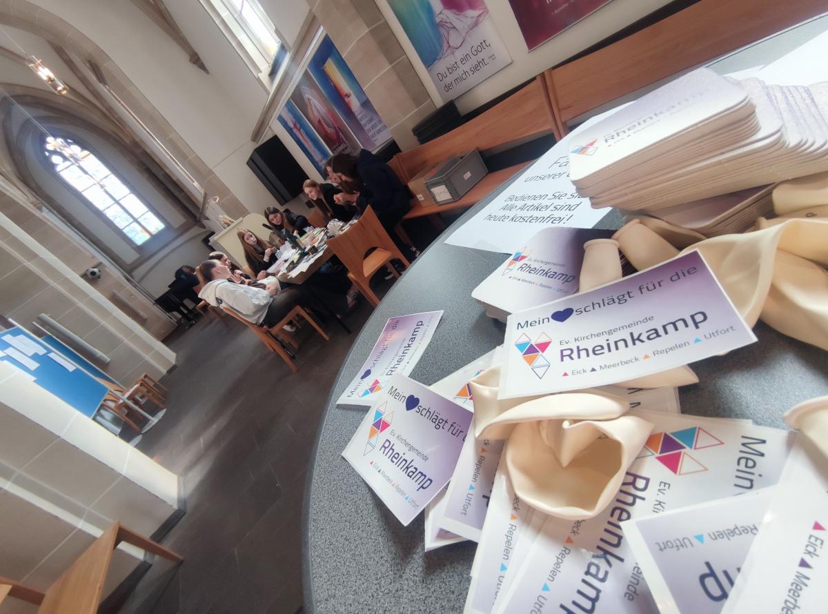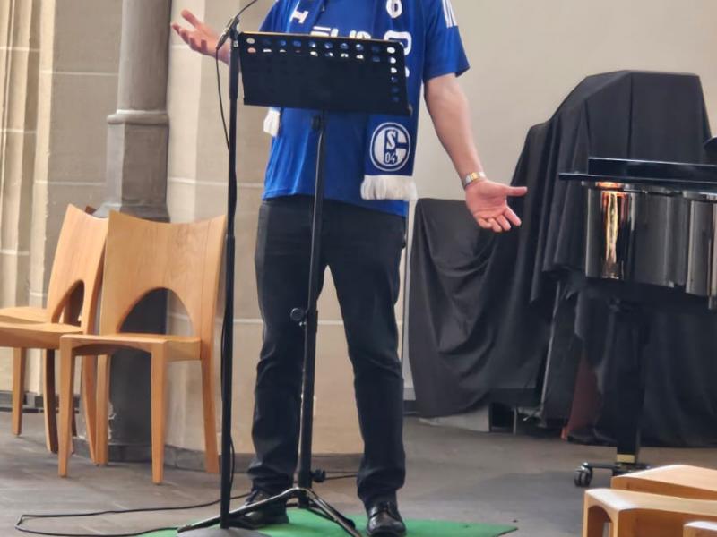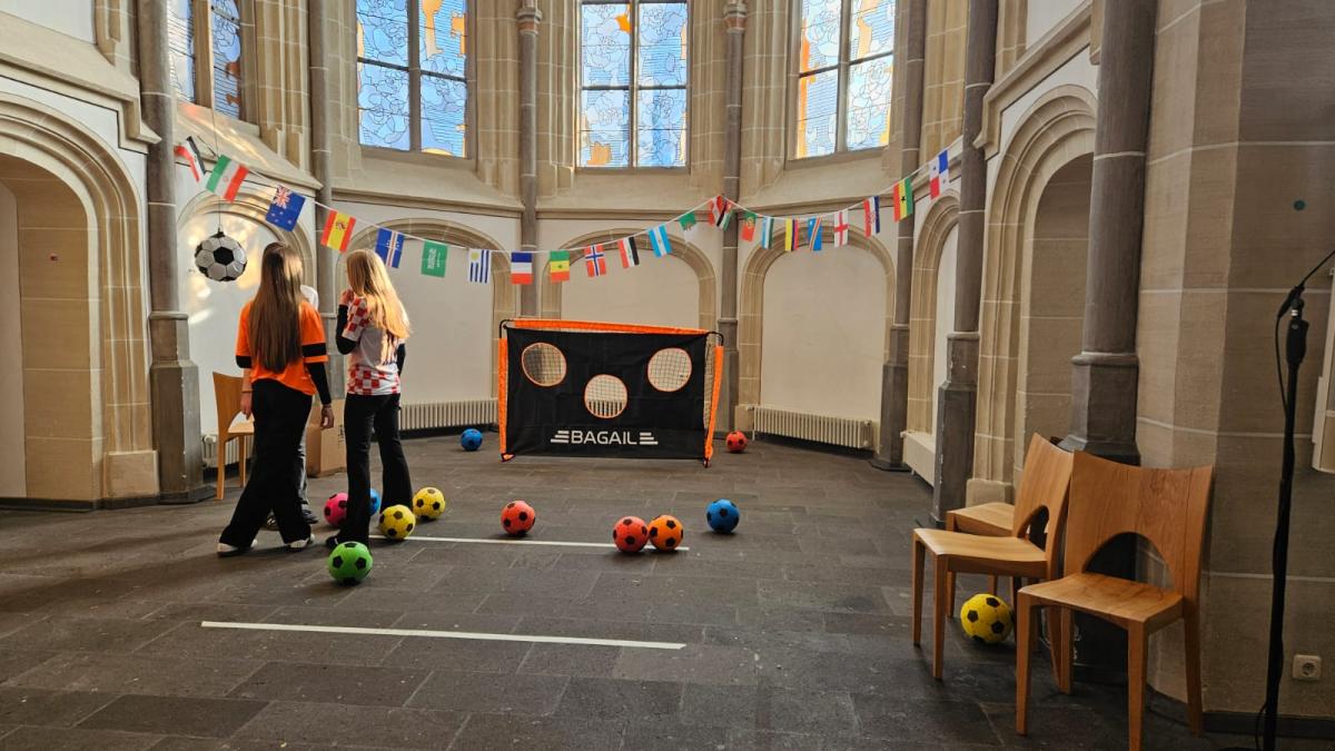 In diesem Jahr findet wieder eine Fußball-WM statt, in den USA, Kanada und Mexiko. Daher das Thema „Eine runde Sache“. Runde 80 Menschen waren in der Dorfkirche Repelen, die diesmal alles zum Thema Fußball zu bieten hatte. Eine Torwand, fangesänge, geleb und rote Karten. In den Kurzpredigten verknüpfte Pfarrer Thorsten Kämmer Elemente aus dem Fußball mit Bibelstellen: "Ein großes Fußballfeld mitten in der Kirche. Aber dieses Feld dient nicht nur der Optik, sondern es lädt ein die einzelnen Positionen, die die Spieler im Spiel einzunehmen, kennen zu lernen und darüber mit sich selber ins Gespräch zu kommen. Wir haben zu Beispiel den Torwart. Die Hauptaufgabe des Torwartes ist natürlich Tore zu verhindern, wenn der Ball plötzlich auf einen zufliegt, wenn ein Spieler alleine auf einen zuläuft oder eben vor einem Elfmeter und da stellt sich die Frage: Wie fühlt es sich an, wenn ich alleine vor großen Entscheidungen stehe? Natürlich ist der Torwart Teil des Teams, aber wenn der Ball reingeht, wird sofort bewertet: war er haltbar oder nicht? Da kommt es ihm so vor, wie dem Volk Israel, dem im 5. Buch Mose 11,26 gesagt wird: „Nun müsst ihr euch entscheiden: Wählt zwischen Segen und Fluch!“