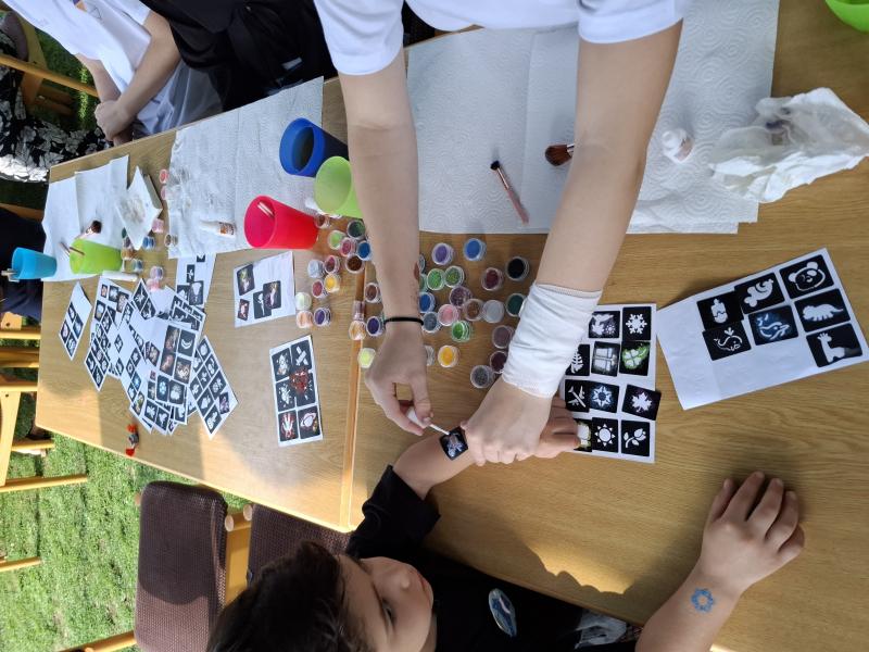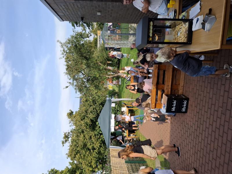 Es gab ein Zauberprogramm, das Spielmobil der Stadt Moers war vor Ort u.a. mit einer großen Hüpfburg, es gab Glitzer-Tatoos, Schirmkappen, Bewegungsspiele und natürlich Waffeln, Crépes, Popcorn, Hot-Dogs und Eis.