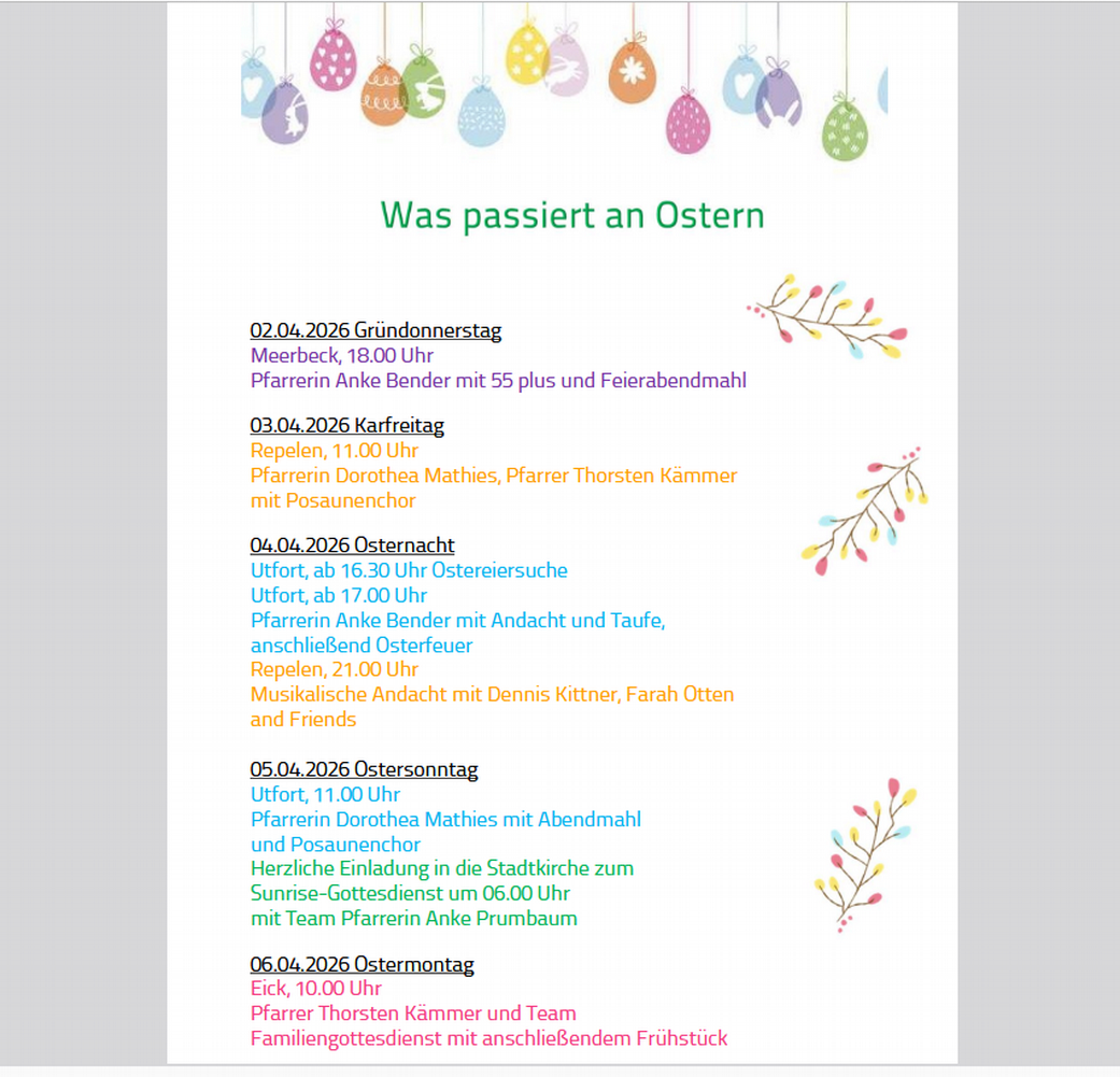 Alle Pfarrer*innen, Gemeindebüros, Jugendleitungen und Ansprechpartner*innen der Kirchengemeinde Rheinkamp.